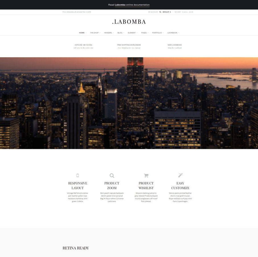 Labomba ist ein WooCommerce-Thema, das entwickelt wurde, um den Mode- und Luxusorientierten Webdesigner anzusprechen. Dank dieses WooCommerce-Themas können Sie Ihre zukünftige eCommerce-Site nicht nur mit den neuesten Mode- und Grafiktrends grafisch dekorieren, sondern auch spezifische Funktionen für die Welt des eCommerce hinzufügen. Wir können zum Beispiel die Implementierung einer Whistlist auf ihrer eCommerce-Website zu schätzen wissen. Schließlich ist hier eine Funktion, die in WooCommerce standardmäßig fehlt. Dieses WooCommerce-Thema wird auch ein großartiger Begleiter für alle sein, die einen Blogabschnitt auf ihrer eCommerce-Site einrichten möchten.